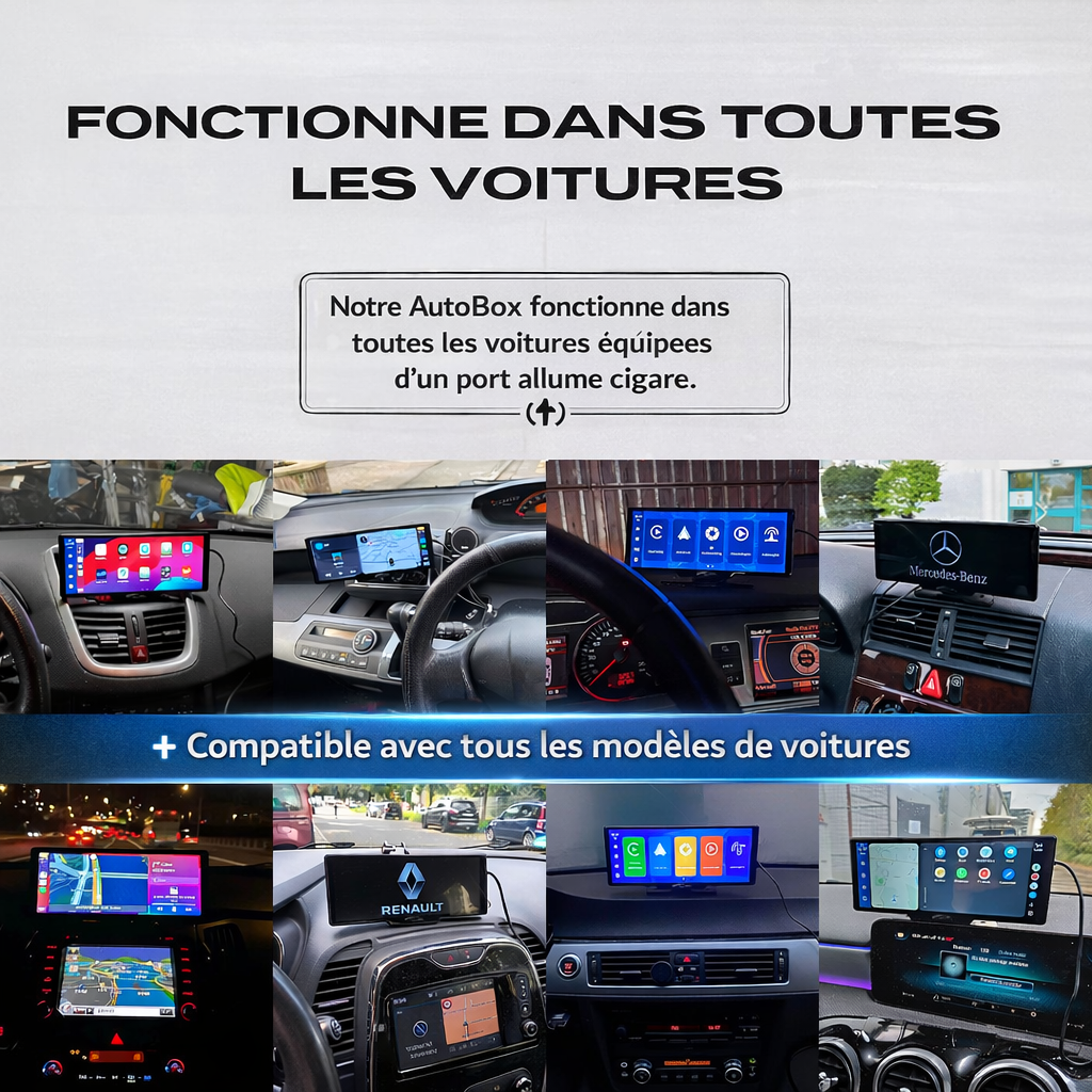 Oui, le AutoBox Pro™ est compatible avec Apple CarPlay et Android Auto. Il apporte les technologies modernes à votre véhicule pour une navigation fluide, une écoute musicale simplifiée, et une communication mains libres en toute sécurité.